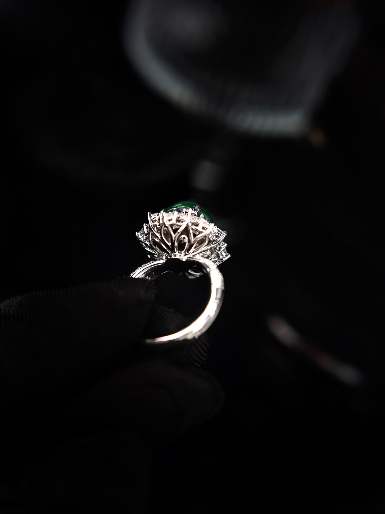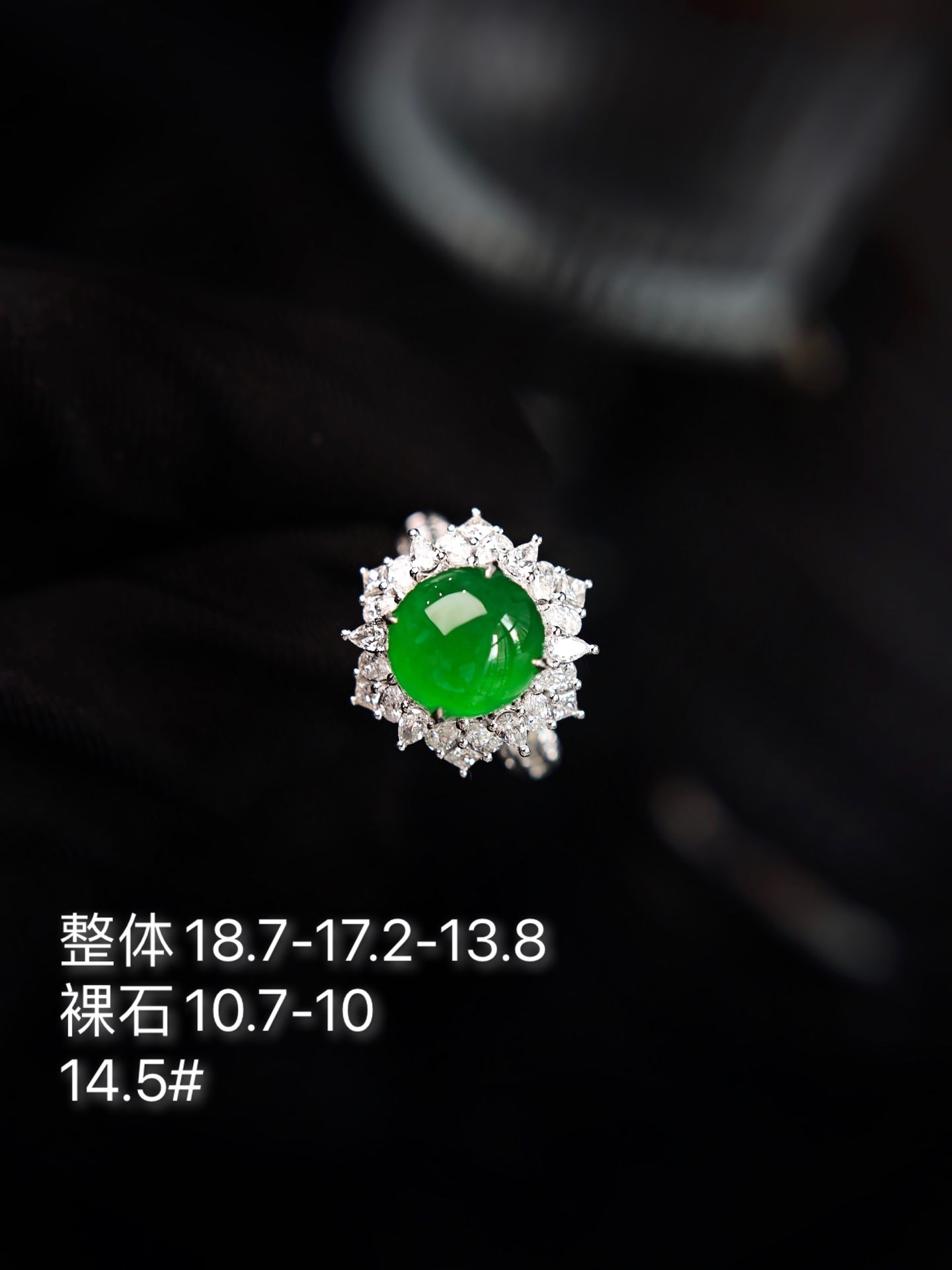 Emerald ring, 18k gold set with green egg face ring, overall: 18.7-17.2-13.8, bare stone: 10.7-10.0