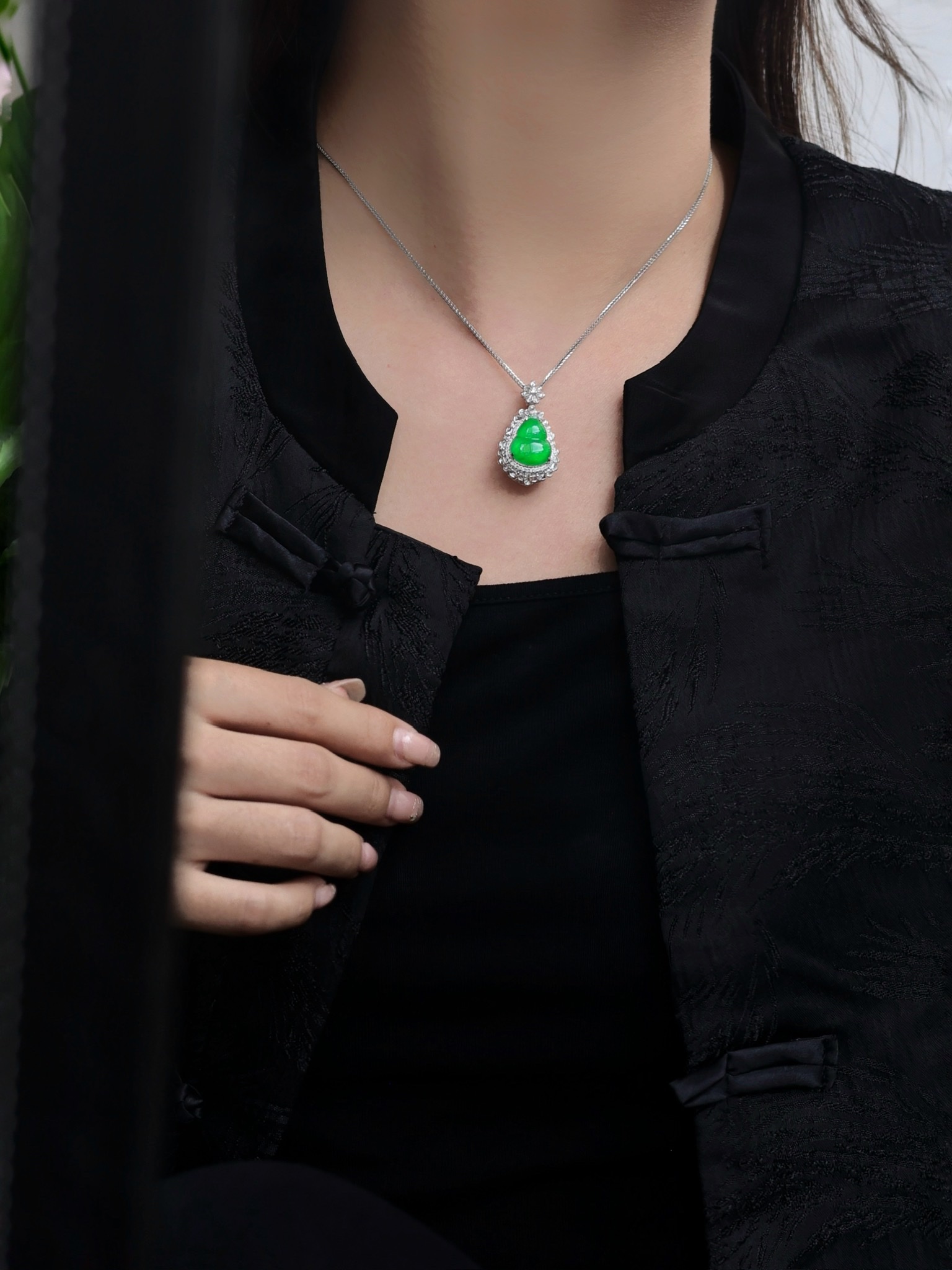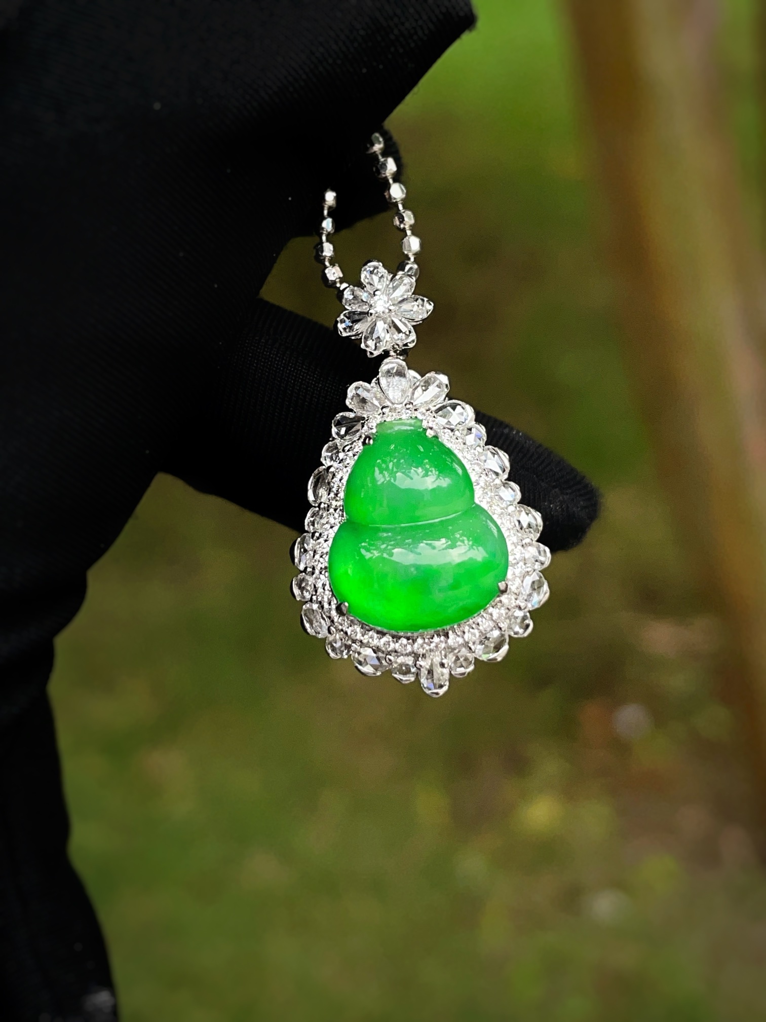 Jade ring, full of green gourd pendant ring dual-purpose, overall: 29.1-17.1-12.8, bare stone: 13.4-11.5
