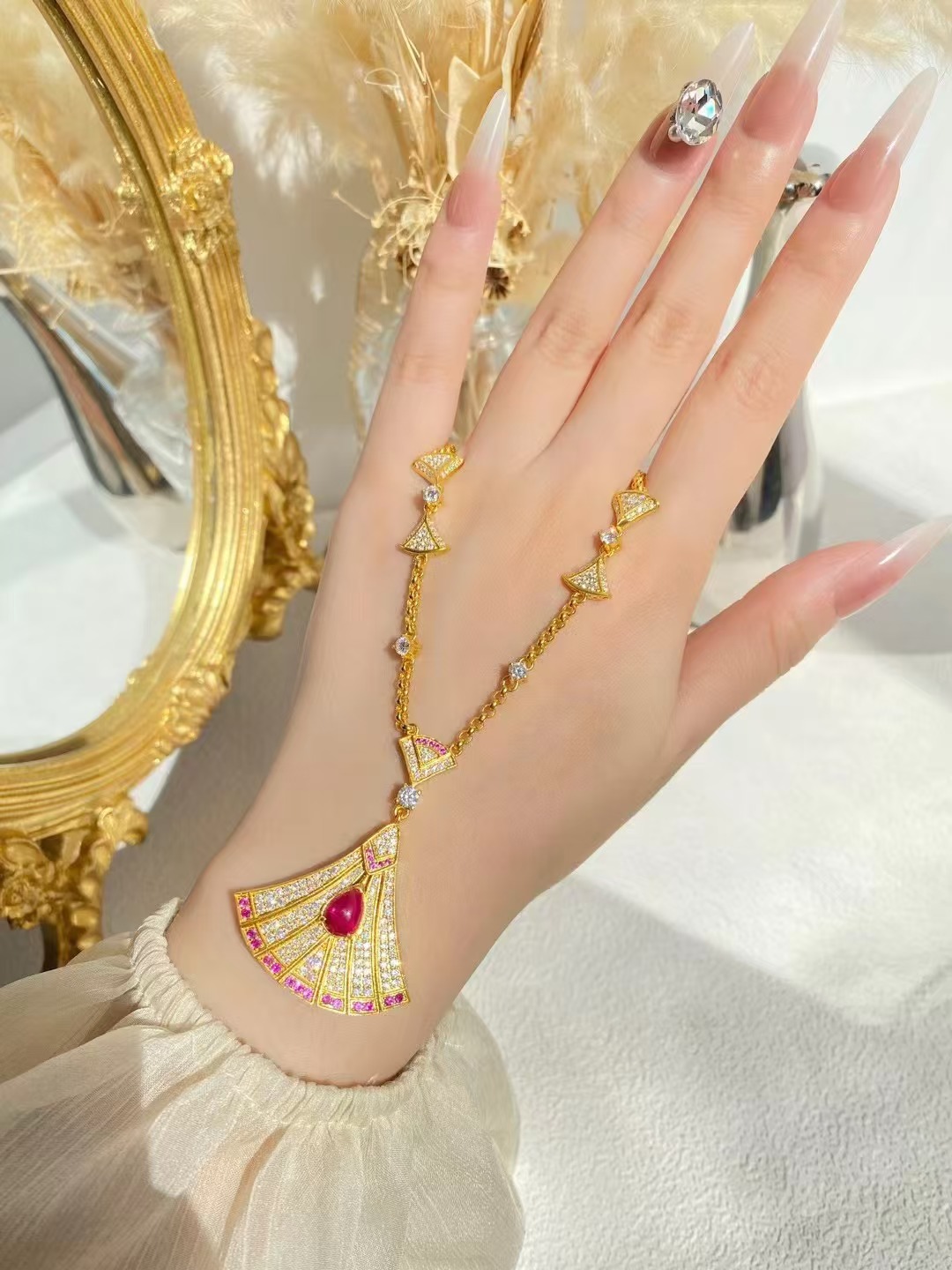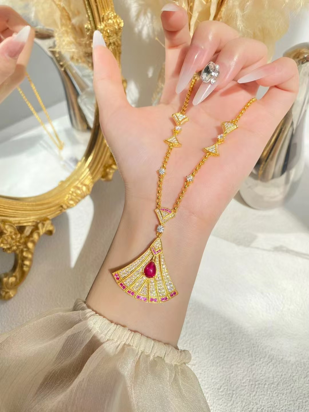 Ruby, Red Treasure fan necklace, Red Treasure with exquisite cutting and setting technology, 31.79g