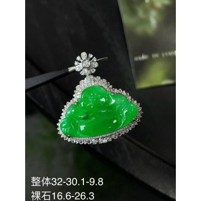 Jade pendant, 18k gold studded with green Buddha Gong pendant, overall: 32.0-30.1-9.8, bare stone: 16.6-26.3