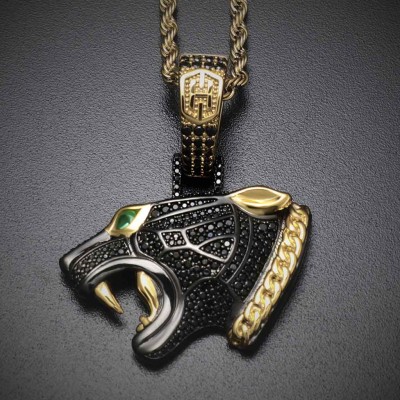 Helloice Iced Black Panther Head Pendant in Black Gold